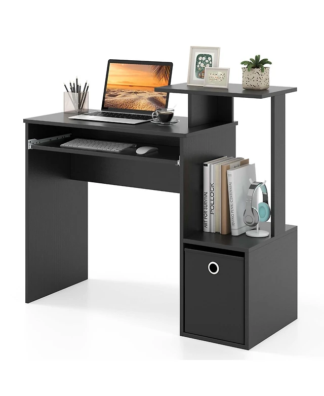 Home Office Computer Desk with Bookcase Keyboard Tray and Cpu Stand