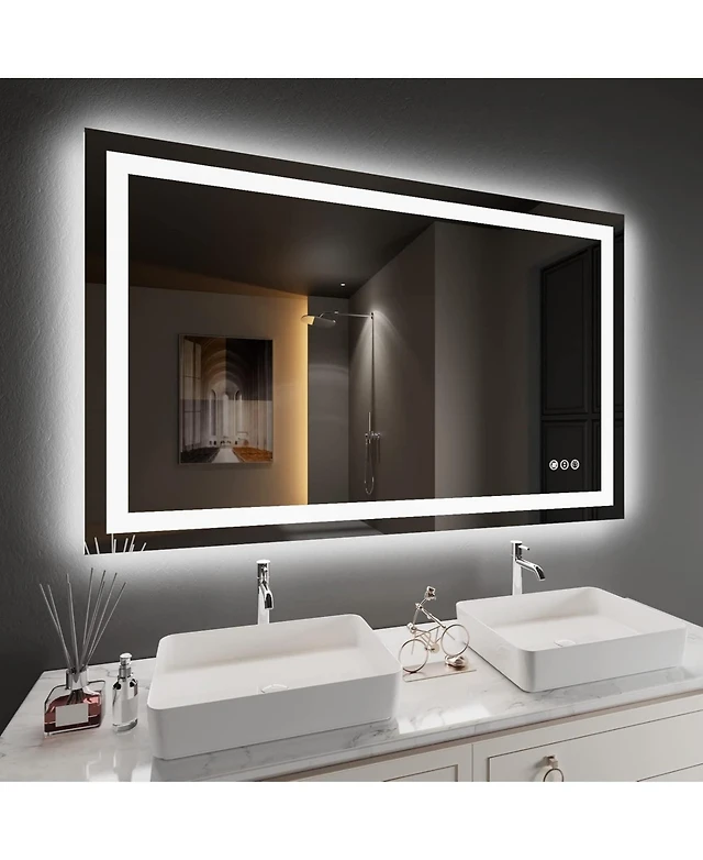 Amorho Led Bathroom Mirror, 55" x 36" with Front Light and Backlit, Stepless Dimmable Wall Mount Mirrors, Anti-Fog, Shatter-Proof, Memory, 3