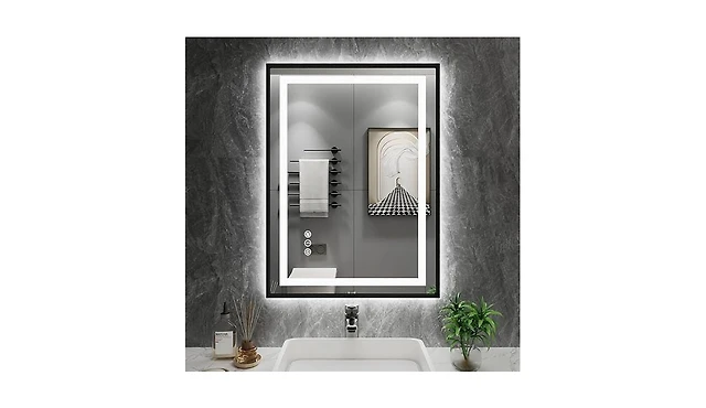 Amorho Led Bathroom Mirror, 48" x 28" Led Bathroom Mirror with Black Frame, Front Light and Backlit, Stepless Dimmable, Anti-Fog, Shatter-Pr