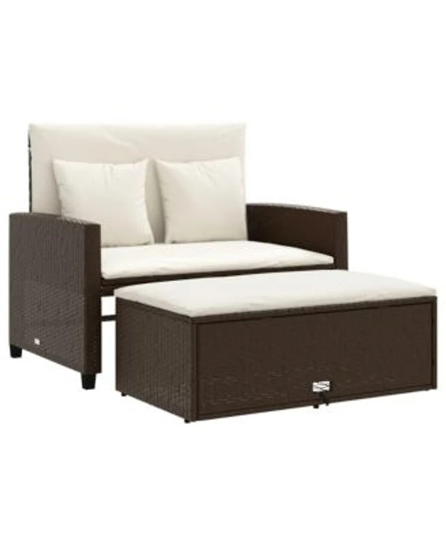 vidaXL Patio Sofa with Cushions 2-Seater Brown Poly Rattan
