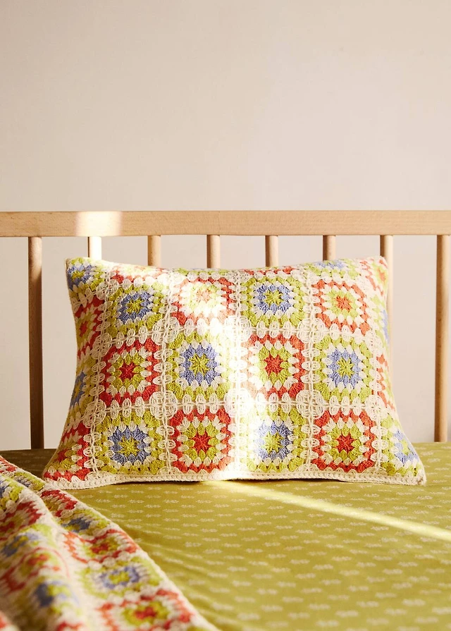 Two cotton percale two-tone floral-print pillowcases 50x75 cm