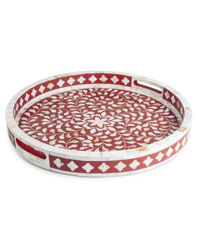 Jodhpur Mother of cultivated Pearl Decorative Tray - Black, 18"
