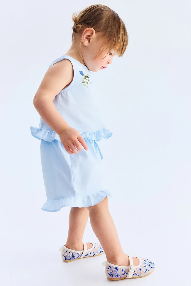 2-Piece Embroidery-Detail Poplin Set