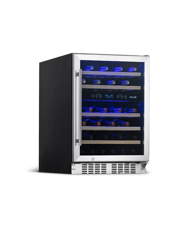 Newair 24 inch 46 Bottle Wine Cooler Refrigerator, Built-in Recessed Kickplate, Dual Zone Wine Fridge in Stainless Steel