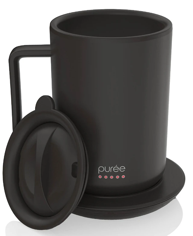 Tzumi Puree Warming Coffee Mug, 12 oz. Stainless Steel Mug with Warmer Coaster and Lid