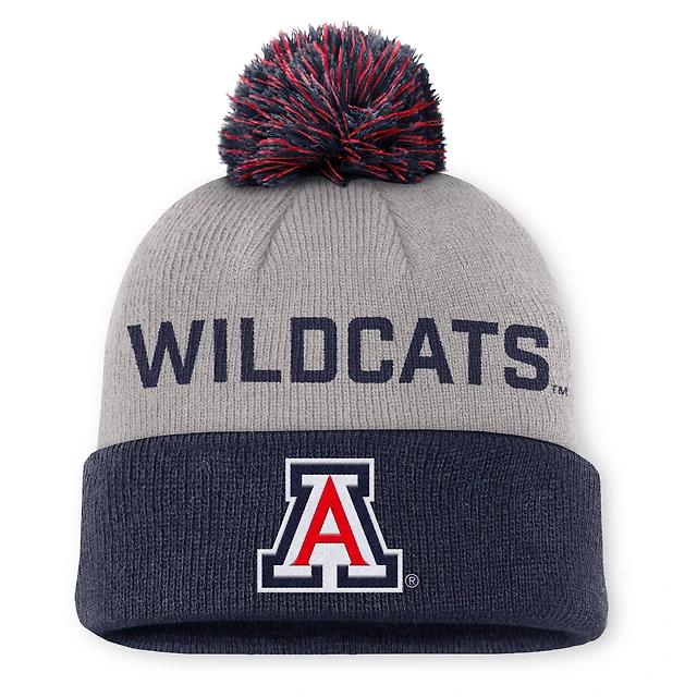 Men's Nike Gray/Navy Arizona Wildcats Primetime Peak Cuffed Knit Hat with Pom