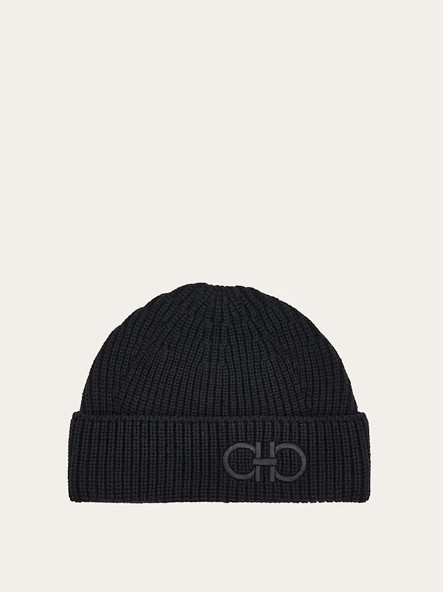 Wool-cashmere beanie hat with Double B monogram
