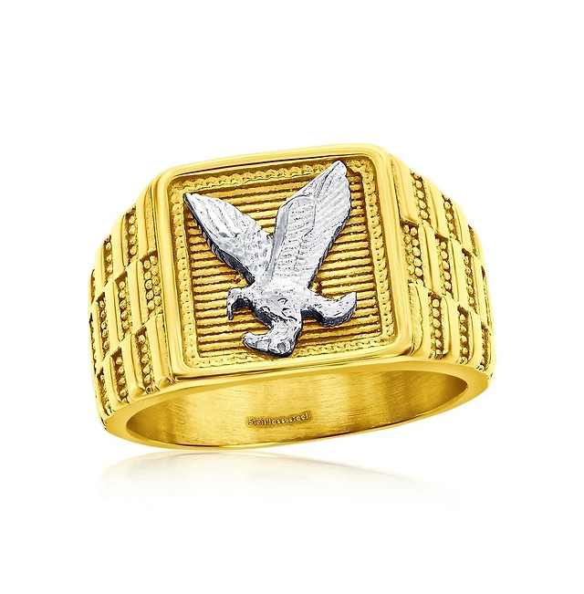 Stainless Steel Square Textured Eagle Design Ring Gold Plated