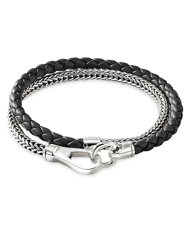 John Varvatos Collection Men's Sterling Silver & Leather Hook Wrap Bracelet