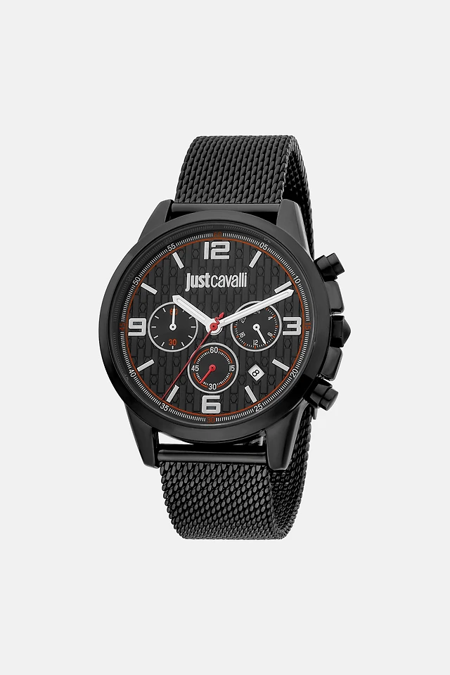 Multifunction Black Stainless Steel Watch and Necklace Set