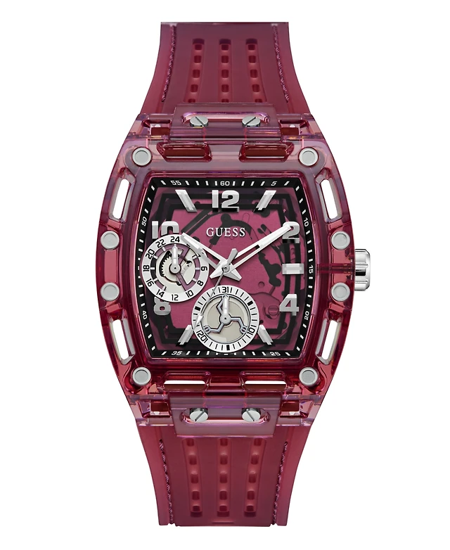 Guess Men's Burgandy Silicone Multi-Function Watch, 42mm