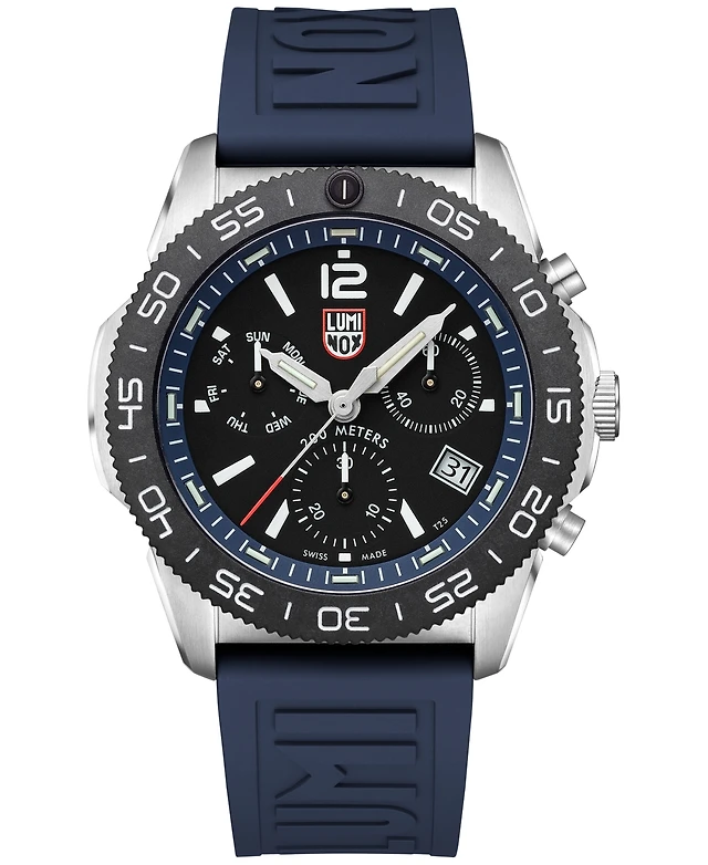 Men's Chronograph in Rose Gold-tone Plated Stainless Steel with Navy Silicone Strap Watch, 46mm