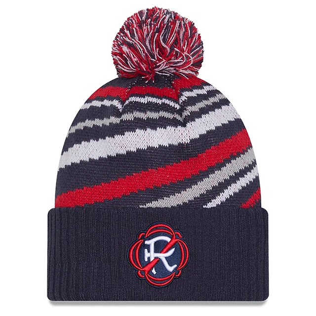 Men's New Era Navy New England Revolution 2025 Jersey Hook Cuffed Knit Hat With Pom