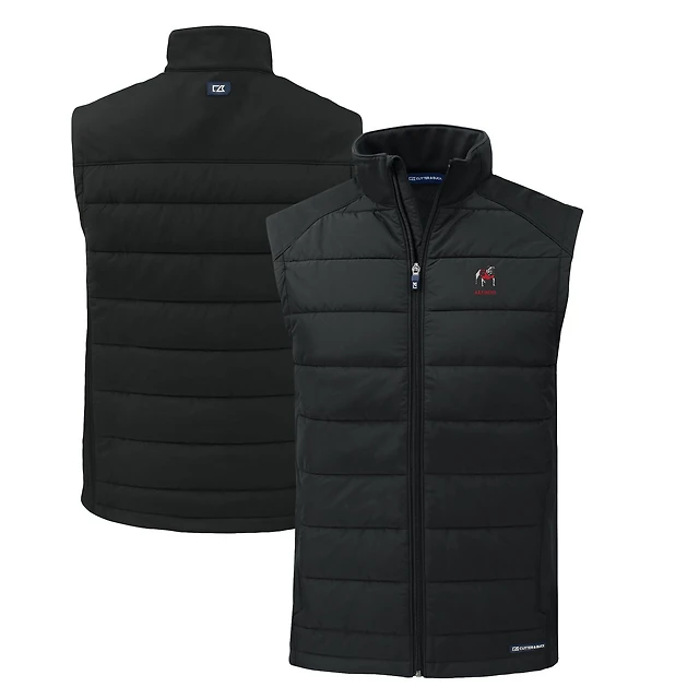 Men's Cutter & Buck Black Georgia Bulldogs Alumni Logo Evoke PrimaLoft Hybrid Eco Softshell Recycled Full-Zip Vest