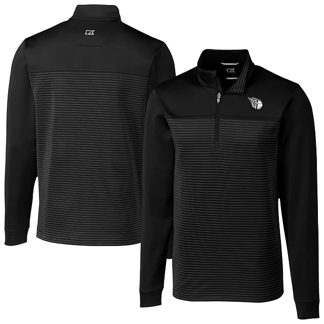 Men's Cutter & Buck Black Cleveland Guardians Traverse Eco Stripe Tri-Blend DryTec Quarter-Zip Top