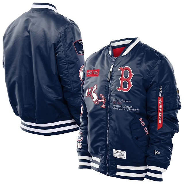 Men's New Era x Alpha Industries Navy Boston Red Sox MA-1 Retro Full-Zip Bomber Jacket