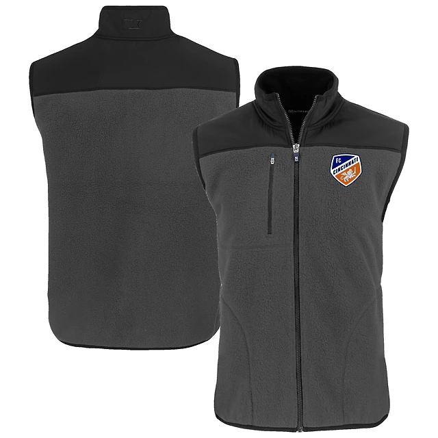 Men's Cutter & Buck Gray FC Cincinnati Cascade Eco Fleece Full-Zip Vest