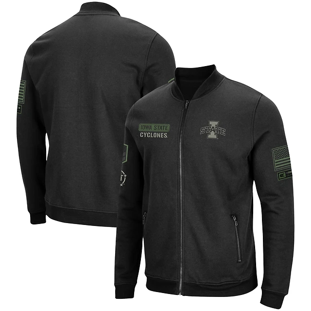 Men's Colosseum Black Iowa State Cyclones OHT Military Appreciation Team High-Speed Bomber Full-Zip Jacket