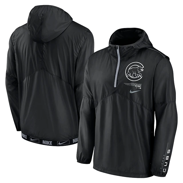 Men's Nike Black Chicago Cubs Authentic Night Game Performance Half-Zip Windbreaker