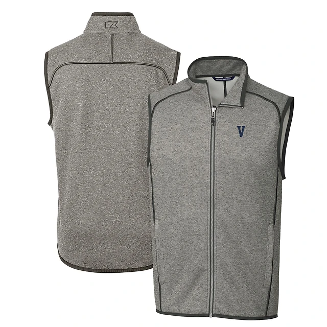 Men's Cutter & Buck Heather Gray Villanova Wildcats Mainsail Sweater-Knit Big & Tall Full-Zip Vest