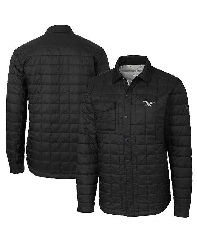 Cutter & Buck Men's Black Philadelphia Eagles Rainier PrimaLoft Eco Insulated Quilted Button-Up Shacket