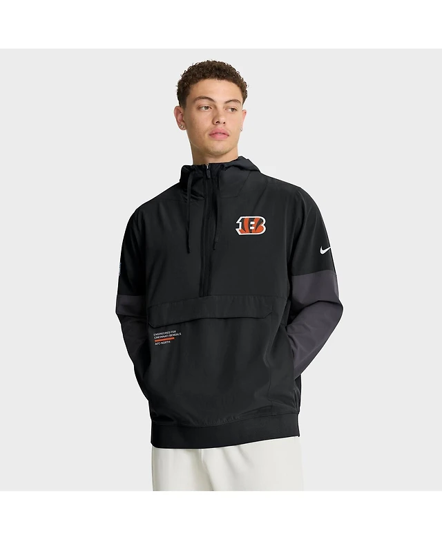 Nike Men's Black Cincinnati Bengals Sideline Anorak Half-Zip Hoodie Jacket