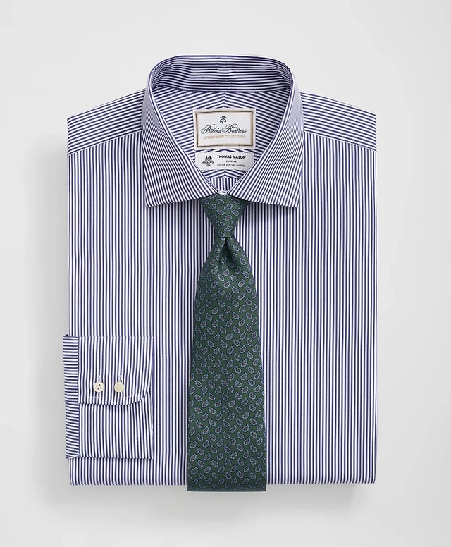 Brooks Brothers x Thomas Mason<sup>®</sup> Cotton Poplin Ainsley Collar, Striped Dress Shirt