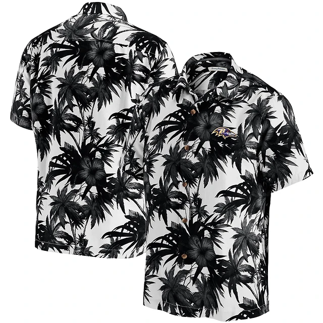 Men's Tommy Bahama Black Baltimore Ravens Sport Harbor Island Hibiscus Camp Button-Up Shirt