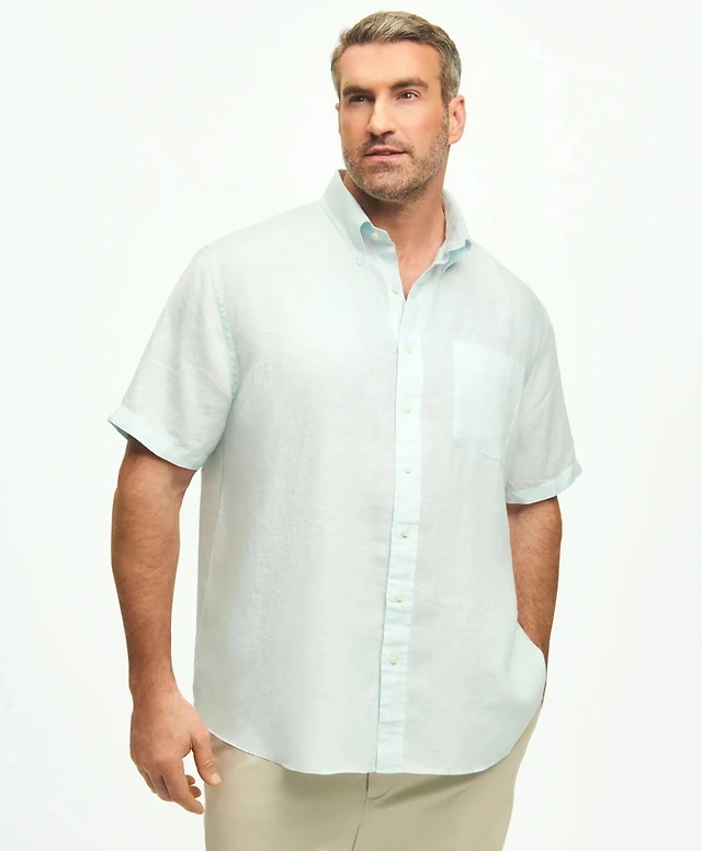 Stretch Non-Iron Oxford Button-Down Collar, Bengal Stripe Short- Sleeve Sport Shirt