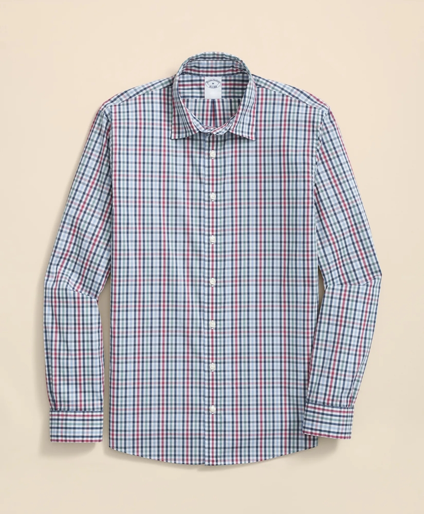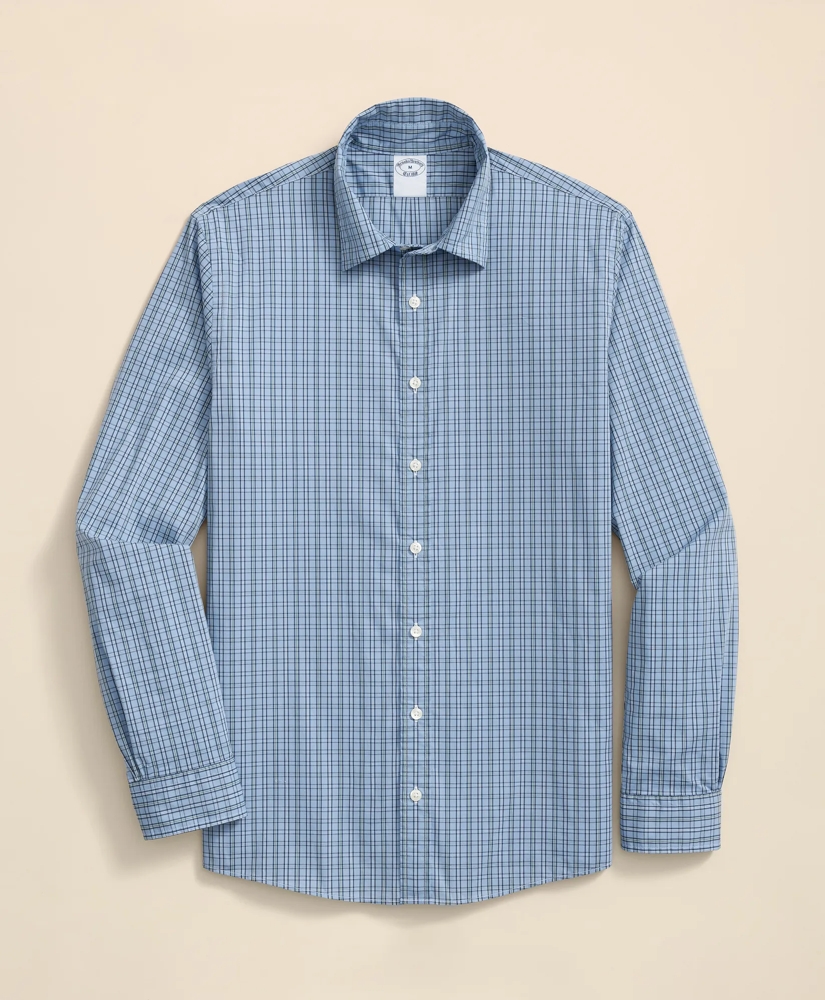 Big & Tall Stretch Supima<sup>®</sup> Cotton Non-Iron Twill Polo Button Down, Check Sport Shirt
