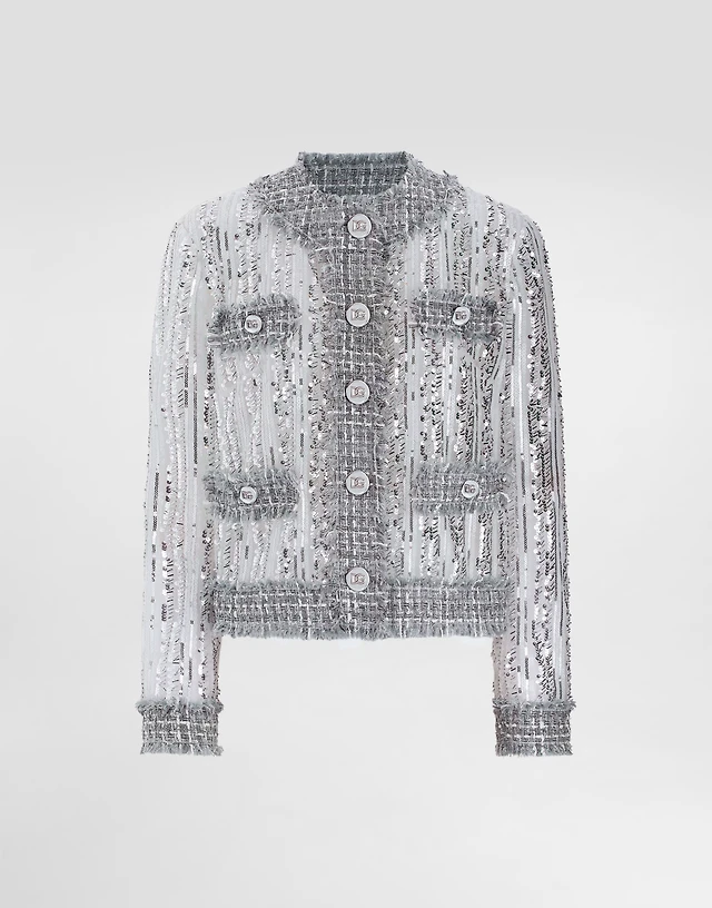 Short single-breasted tweed jacket with micro-sequin embellishment