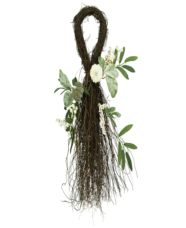 24" Pumpkins and Berries Artificial Fall Harvest Twig Teardrop Swag