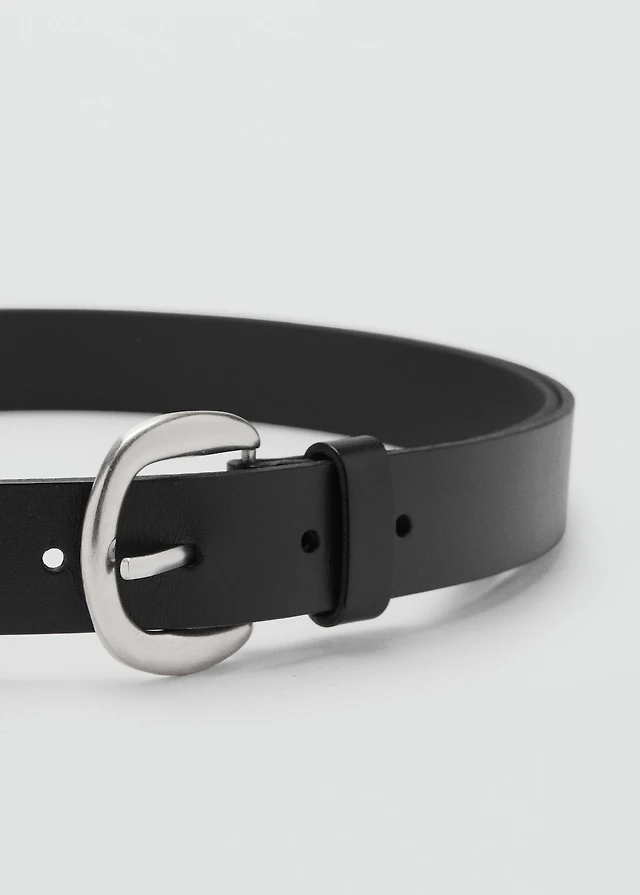 Leather belt with oval buckle