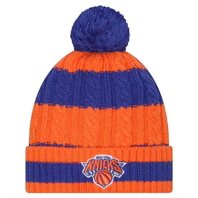 Women's New Era Blue/Orange New York Knicks Braided Cuffed Knit Hat with Pom