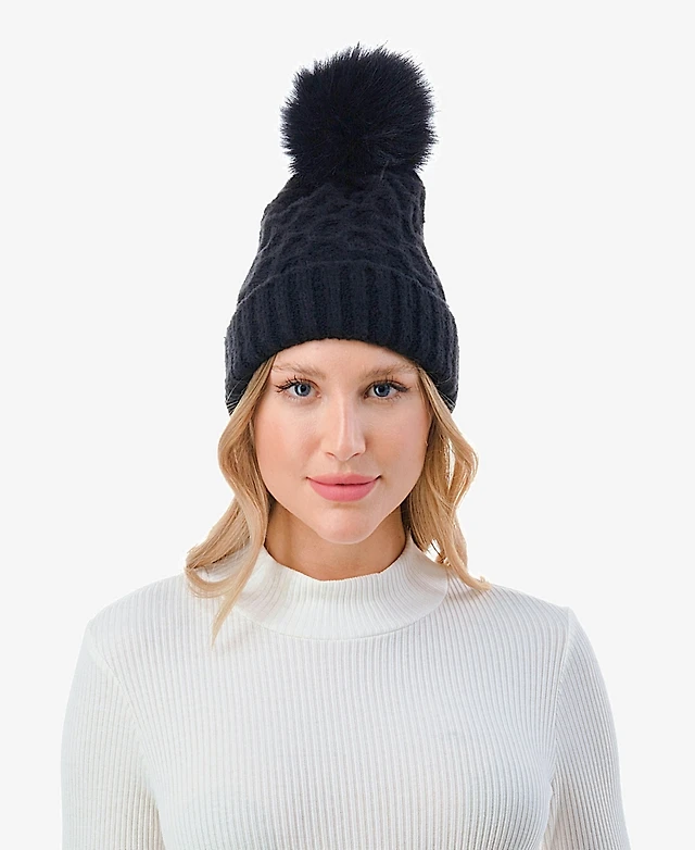 Calvin Klein Chunky Rib Knit Pom Beanie