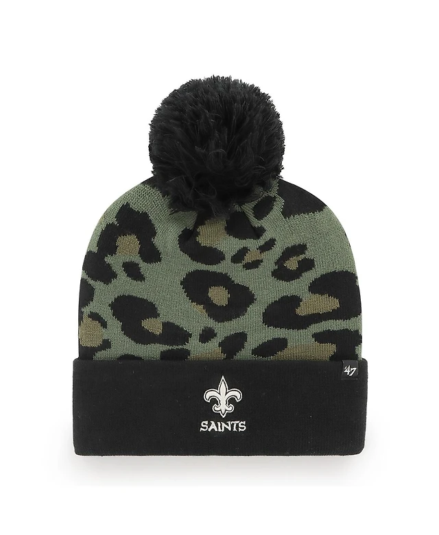 Women's '47 Brand Green, Black New Orleans Saints Bagheera Cuffed Knit Hat With Pom