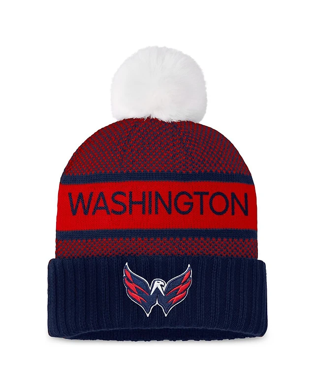 Fanatics Women's Navy/Red Washington Capitals Authentic Pro Rink Cuffed Knit Hat with Pom