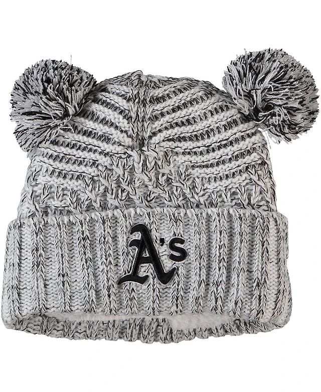 Women's Gray Oakland Athletics Dual Cuffed Knit Hat with Poms