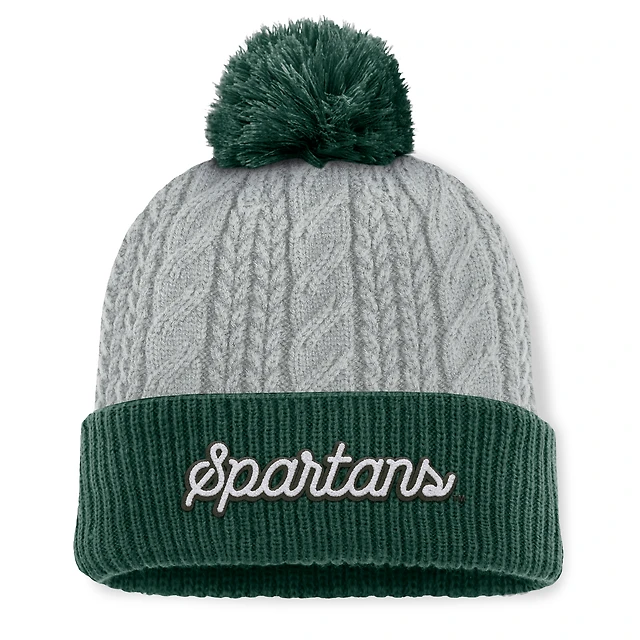 Women's Top of the World Gray/Green Michigan State Spartans Becca Cuffed Knit Hat with Pom