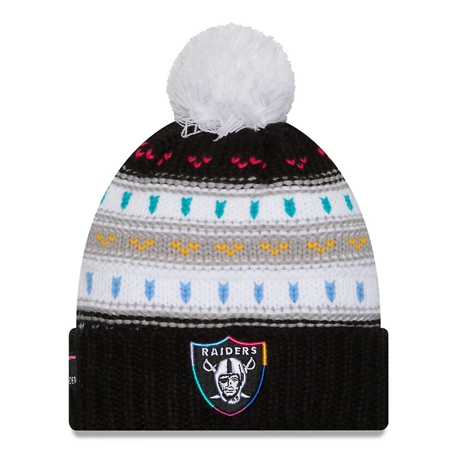 Women's New Era Black Las Vegas Raiders 2025 NFL Crucial Catch Cuffed Knit Hat with Pom
