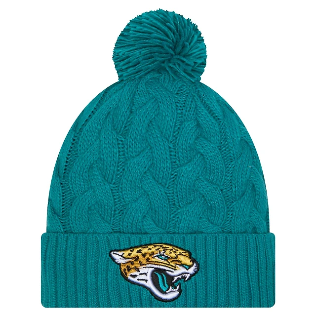 Women's New Era Teal Jacksonville Jaguars Cable Cuffed Knit Hat with Pom