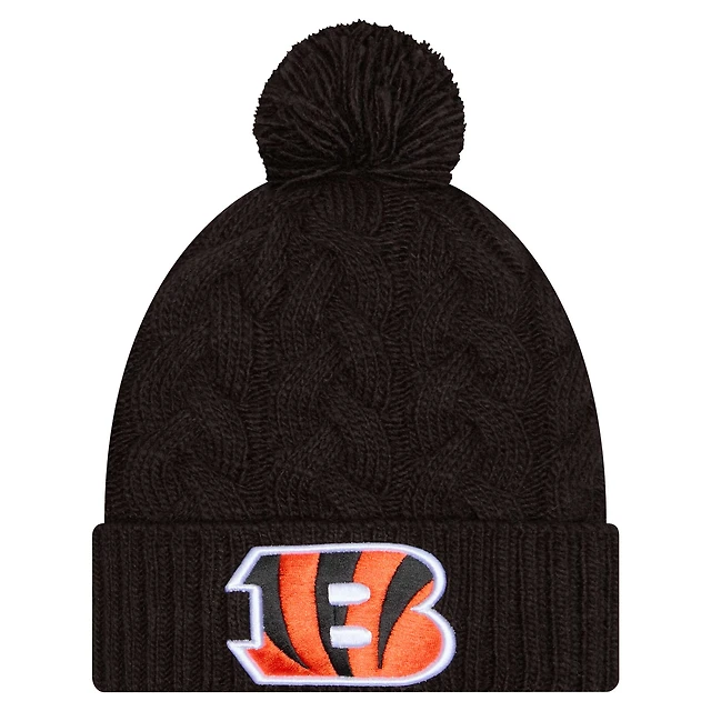 Women's New Era Black Cincinnati Bengals Cable Cuffed Knit Hat with Pom
