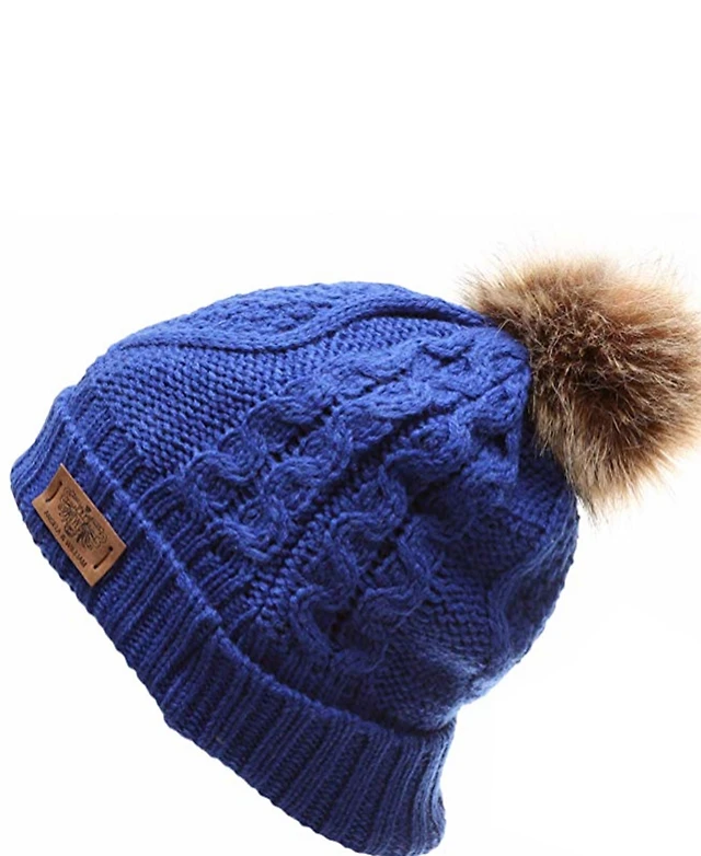 Marcus Adler Women's Cable Knit Faux Fur Pom Beanie