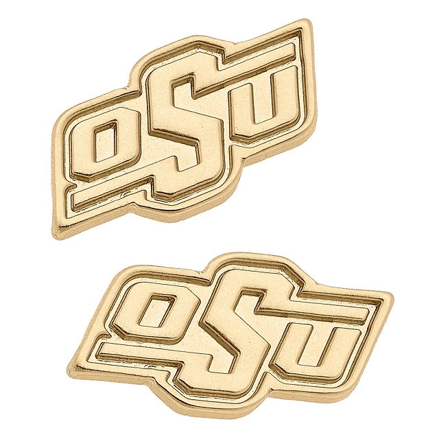 Women' CANVAS Style Oklahoma State Cowboys 24K Gold Plated Stud Earrings