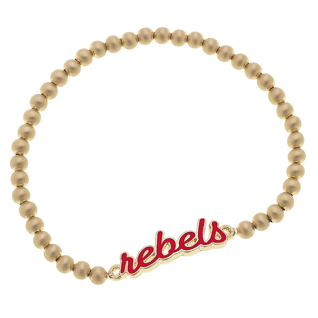 Women' CANVAS Style Ole Miss Rebels Enamel Script Ball Bead Stretch Bracelet
