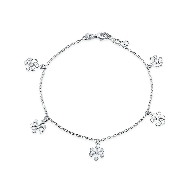 Bling Jewelry Holiday Party Christmas Dangling Multi Charms Frozen Winter Snowflake Anklet Ankle Bracelet Sterling Silver Adjustable 9-10 Inch