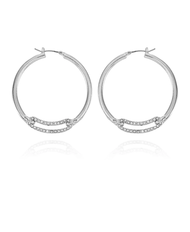 Vince Camuto Silver-Tone Clear Glass Stone Hoop Earrings