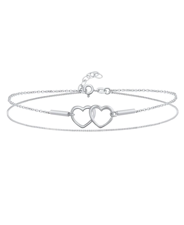 Bling Jewelry 2 in 1 Set Interlocking Open Hearts Double Chain Anklet Ankle Bracelet Sterling Silver Adjustable 9 To 10 Inch With Extender