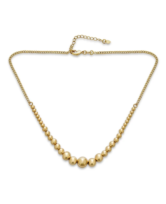 Bling Jewelry Classic Elegant Simple Round Ball Strand Necklace Yellow Gold Plated Adjustable Graduated 3-10MM
