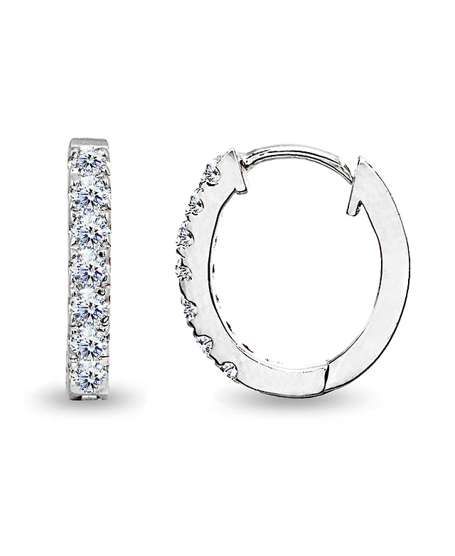 Effy Diamond & Out Small Hoop Earrings (3/8 ct. t.w.) Sterling Silver, 1"